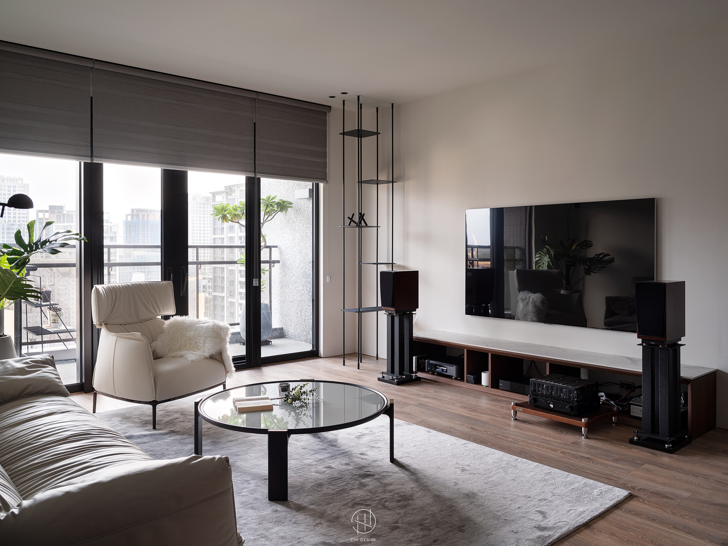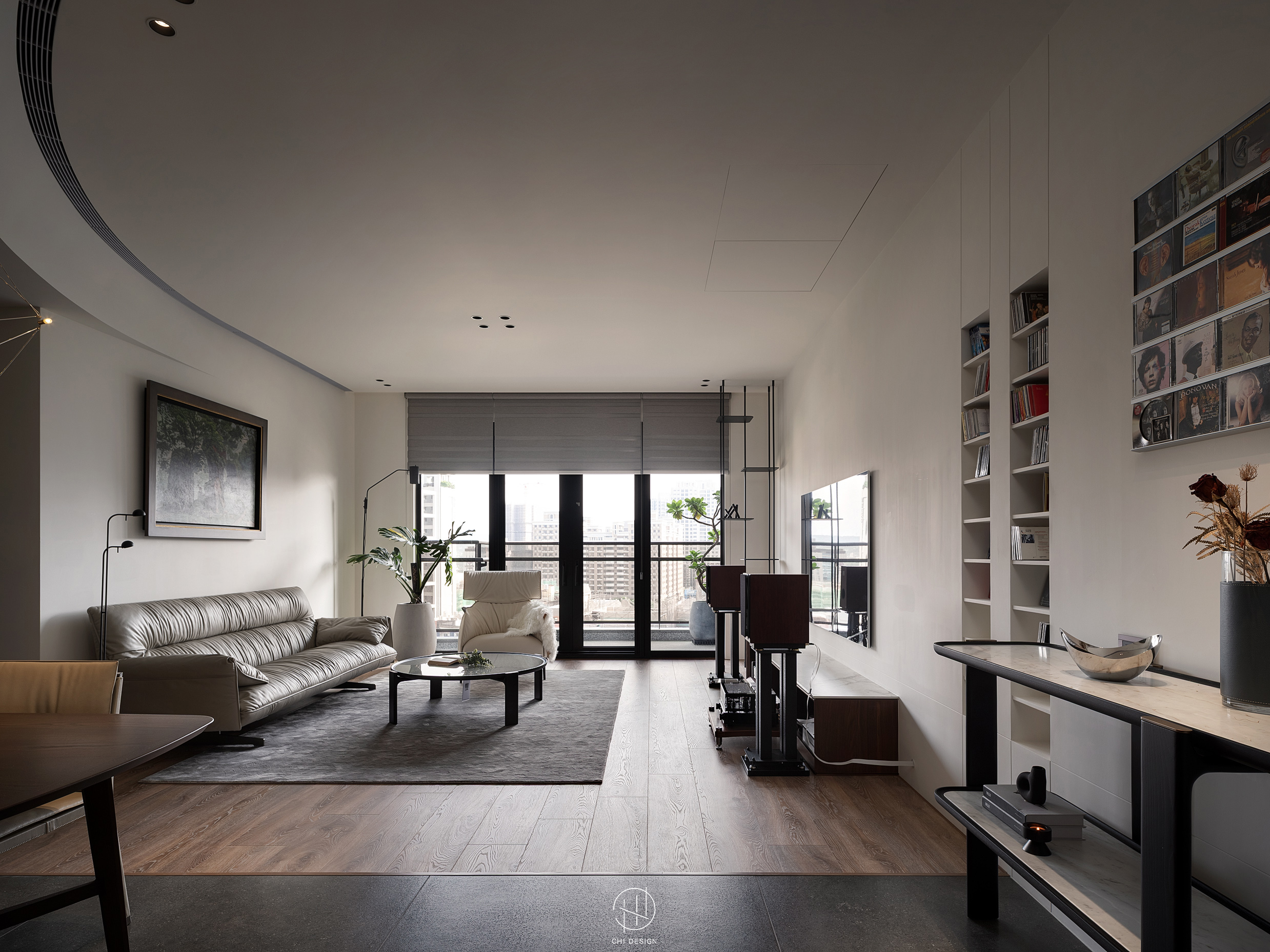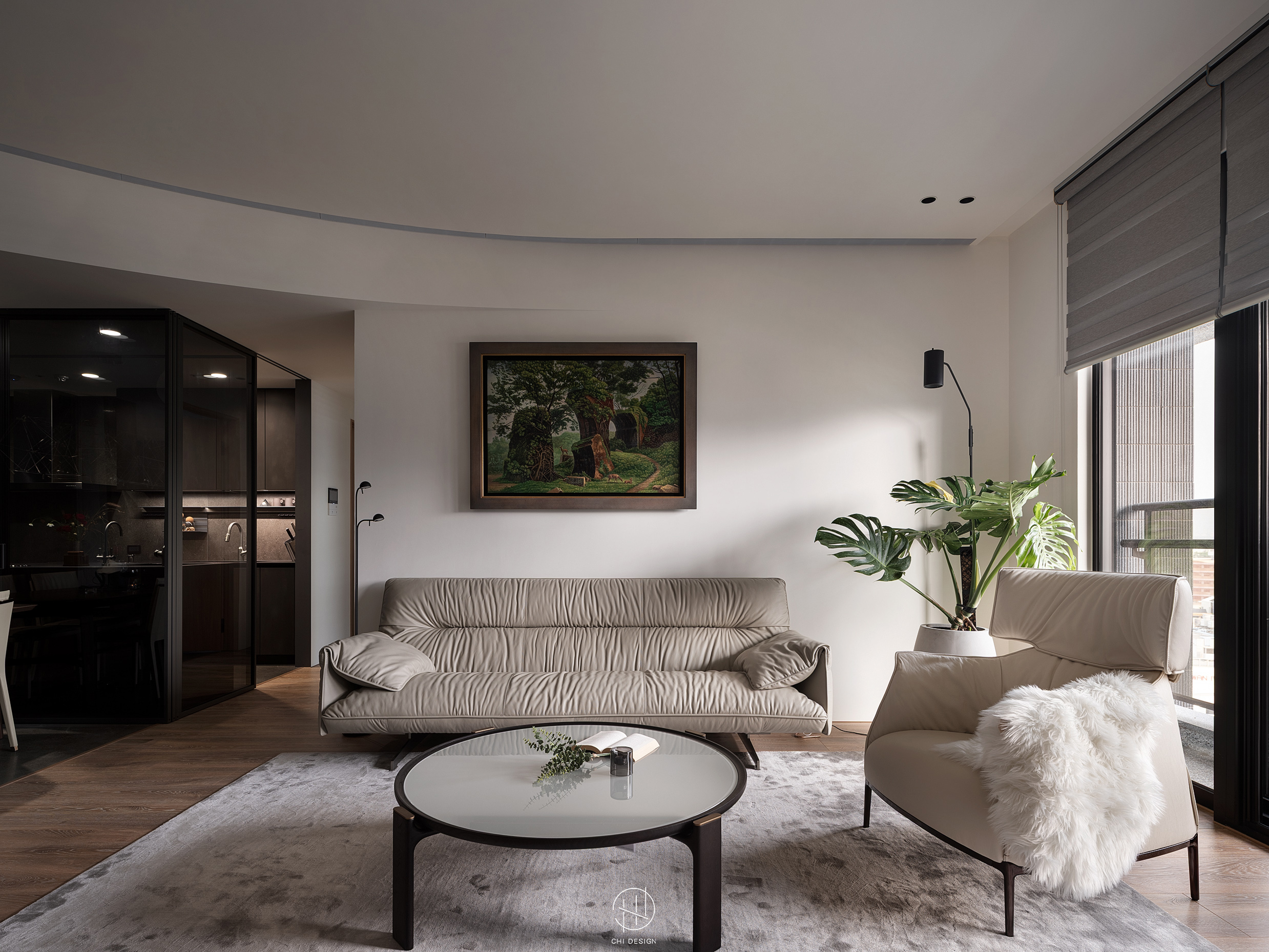 當陽光升起,柔和的光影與弧形輪廓,輕輕拉開屬於2人生活的序幕,曲線天花劃過天際,勾勒出流動節奏;細膩的圓弧語彙,貫穿客廳、餐廳與廚房動線,使空間宛如一首交響樂前的慢板,引領步伐進入恬靜、溫柔的日常。